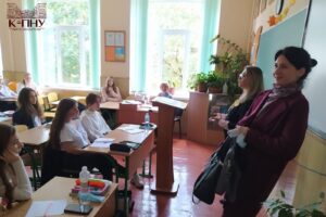 Завідувач кафедри політології та філософії, кандидат політичних наук Ольга Віннічук, старший викладач кафедри екології Оксана Тютюнник і старший викладач кафедри журналістики Наталія Загоруйко поспілкувалися з випускниками щодо спеціальностей, за якими виш готує фахівців. Інформація для учнів була дуже актуальною, оскільки освітній процес в ліцеї організовано відповідно до профілів: біолого-хімічний, історичний, математичний та філологічний.