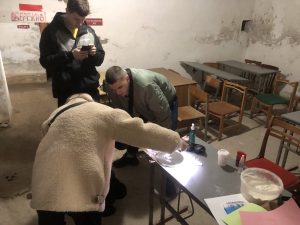 (на фото практичне заняття в укритті з дисципліни “Фотожурналістика”, Zh1-B21 група вивчає предметну зйомку)