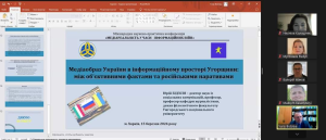 Cтарший викладач кафедри журналістики Анастасія Іванівна Сімашова взяла участь у роботі Міжнародної науково-практичної конференції «МЕДІАРЕАЛЬНІСТЬ У ЧАСИ ІНФОРМАЦІЙНИХ ВІЙН», яку організувала кафедра журналістики Харківського національного університету імені В.Н.Каразіна 15 березня 2023 року.