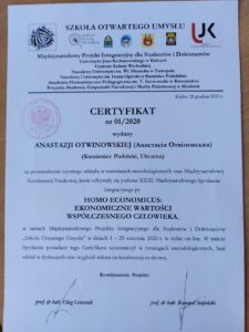 Сертифікат про участь О.В. Лівіцької (Sertyfikat)